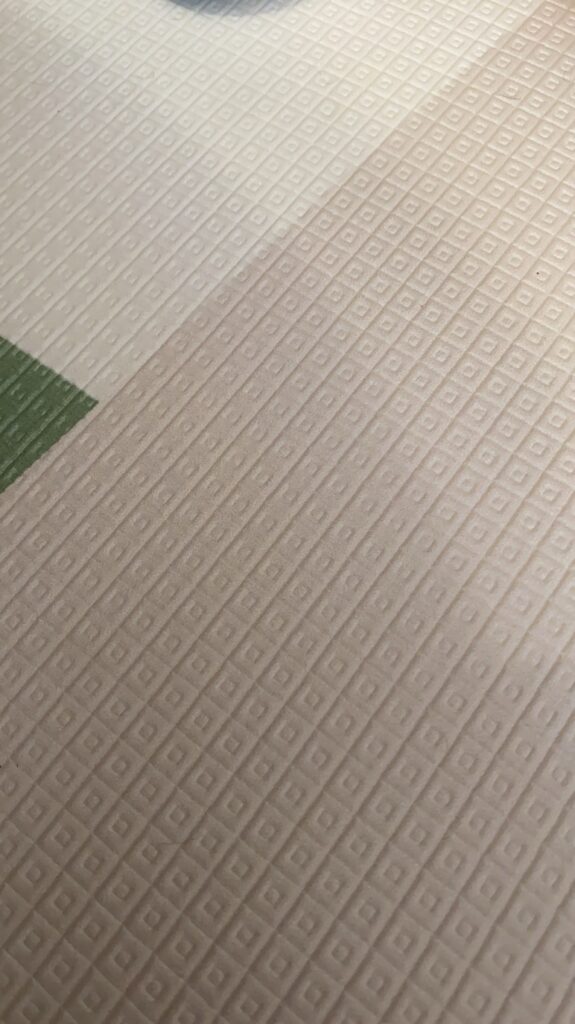 下面是几个tiny land 的爬爬垫我买的实物图片。可以看到因为爬爬垫做了纹理,所以不滑。然后爬爬垫是做成了有点记忆材料的感觉,踩感很好。