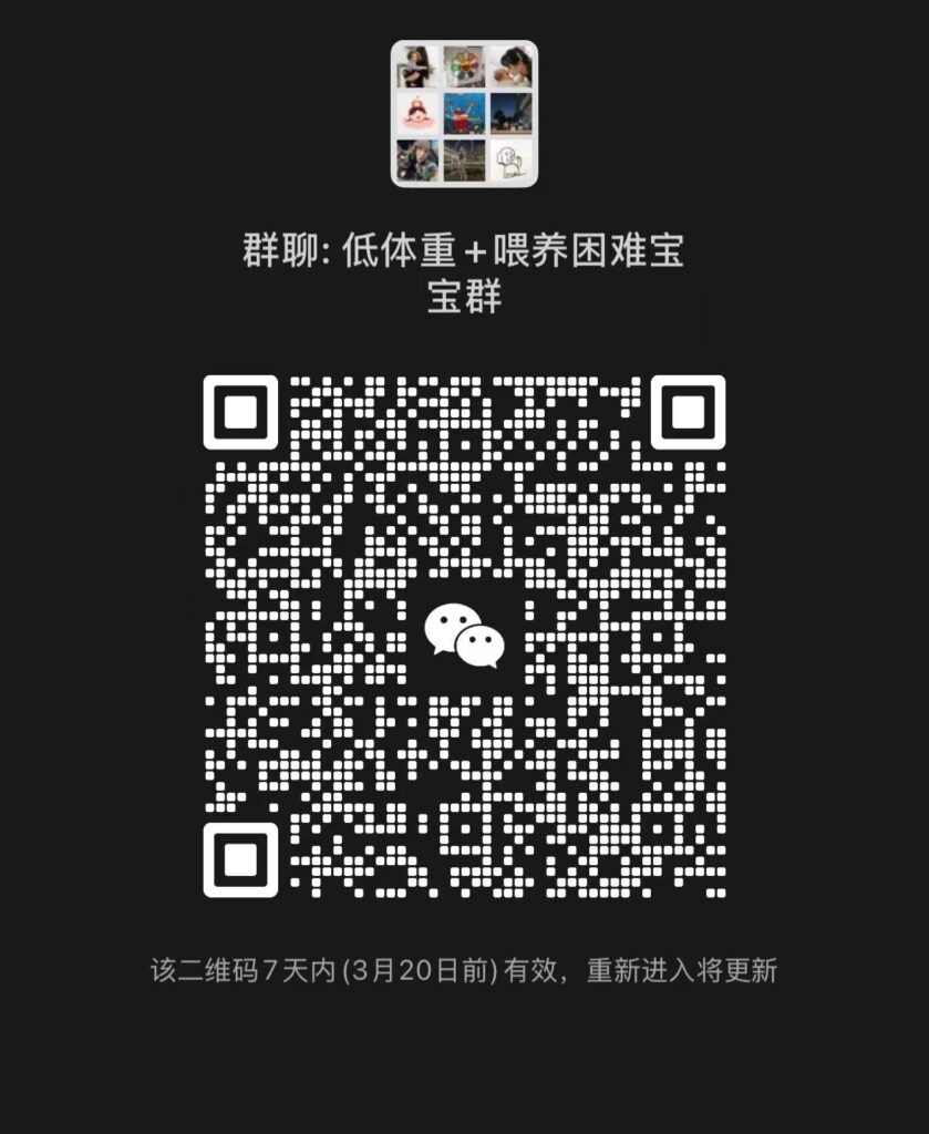 二、我还有一个宝宝低体重/喂养困难群,群二维码在下面(FTT资料分享网盘在群公告自己取,请扫码进群):